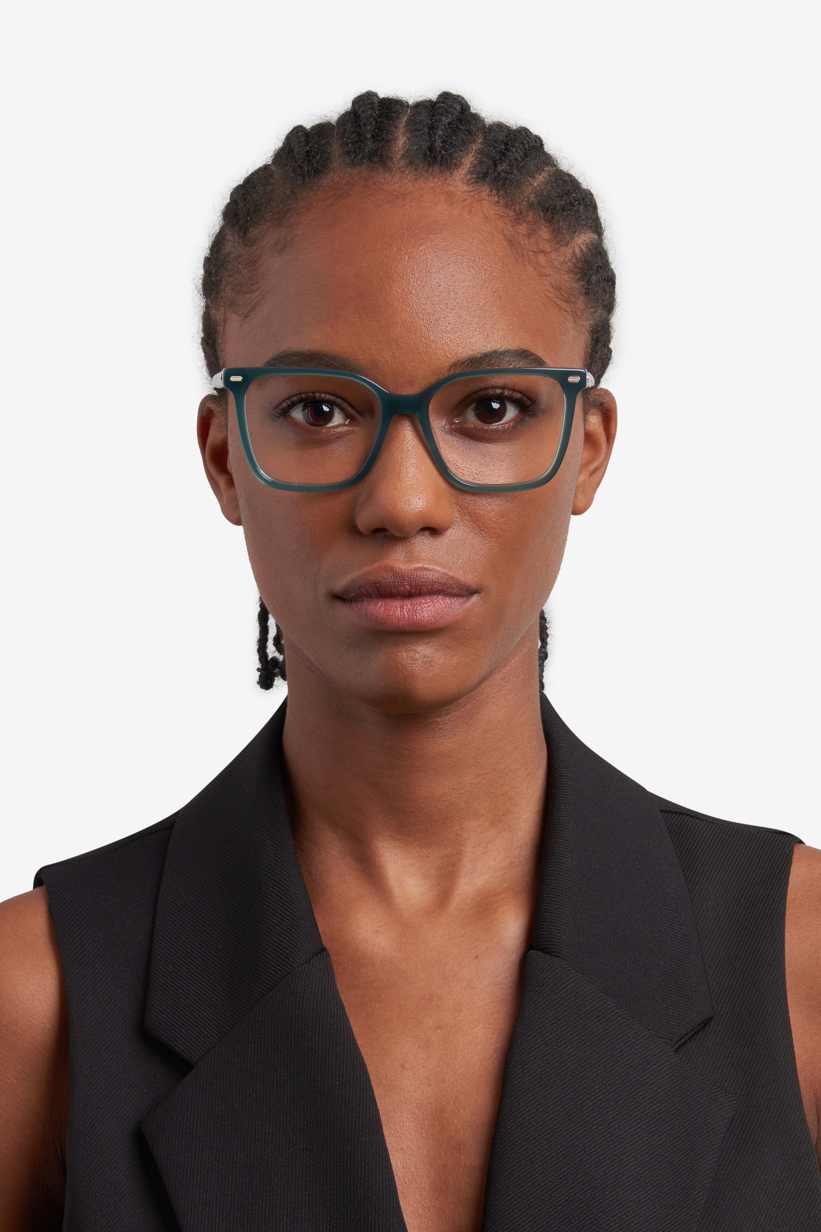Kurz gesagt, wähle eine Fassung, die proportional zu deinem Gesicht ist, deren Steg nicht verrutscht, deren unterer Rand nicht die Wangen berührt und deren oberer Rand die Augenbrauen nicht verdeckt.